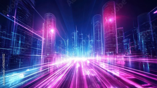 Dynamic neon-lit city wallpaper with flying vehicles and retro futuristic backdrop