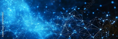 Dynamic Network Concept with Blue Interconnected Dots and Abstract Lines Representing Data Systems