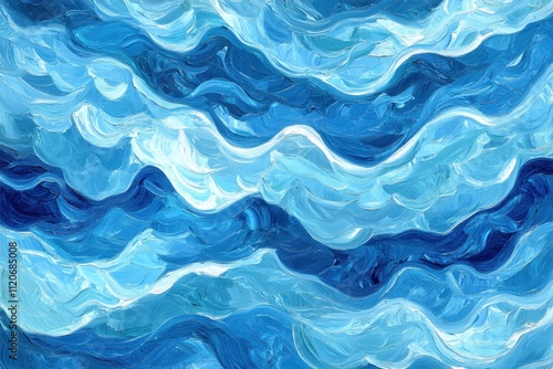 Dynamic ocean waves artwork abstract interpretation blue color palette fluid design contemporary style for art lovers