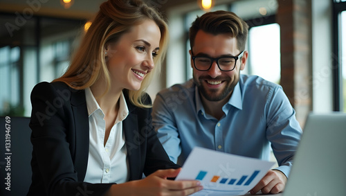 Dynamic Office Collaboration: Female Manager Presents Financial Results to Colleagues in Corporate Meeting - Professional Teamwork with Laptops in Action