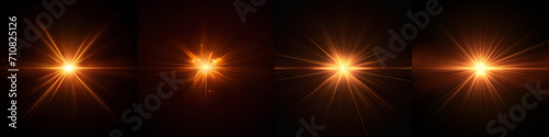 Dynamic orange Celestial Explosion set. Black Background with Glowing golden orange Sunburst, Digital Lens Flare, and Color-Adjusted Light Rays