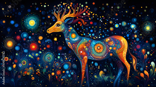 Dynamic Portrayal of Indian Gond Art Style Focusing on Simple and Beautiful Animal Drawings Adorned with Lively Colors