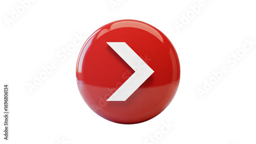 Dynamic red sphere with white chevron symbol signifies progress, direction, or forward momentum in modern design