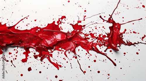 Dynamic ruby red paint splashes creating an artistic pattern on a white background.