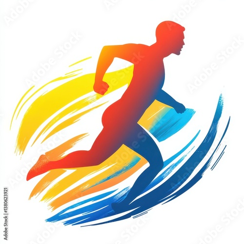 Dynamic runner in motion with colorful brush stroke effects conveying speed and energy