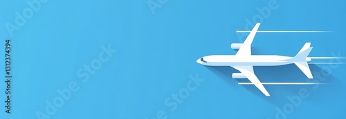 Dynamic side view of a white airplane in motion against a bright blue background : Generative AI