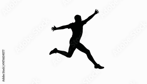 Dynamic silhouette mid-jump with extended leg, freedom concept