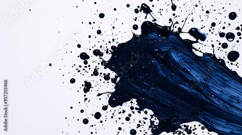 Dynamic splash of dark blue paint on a white background, creating an artistic and bold visual impact for creative projects.