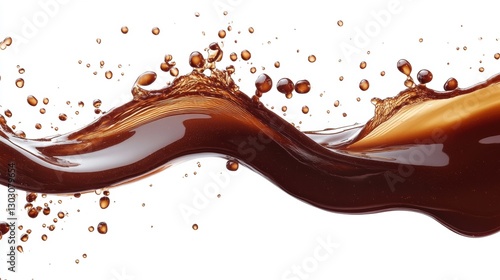 Dynamic splash of liquid chocolate swirling elegantly on a white background