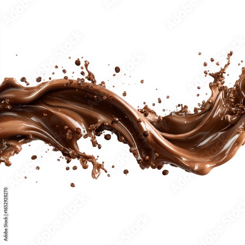 Dynamic splash of rich, flowing chocolate, showcasing a smooth texture and delightful droplets