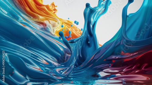 Dynamic swirl of blue, red, and yellow paint splashes.