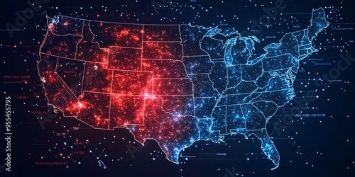 Dynamic US map showcasing election night results with red and blue state indicators and statistics