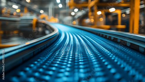 Dynamic view of a conveyor belt in a modern industrial setting, showcasing technology and efficiency in motion.