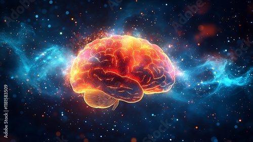 Dynamic visualization of brain activity during problem solving represented colorful burst of light specific brain region symbolizing cognitive neuroscience