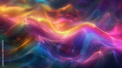 Dynamic wallpaper with cascading rainbow sand waves liquid textures glowing orbs gradients