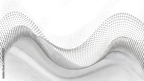 Dynamic wave with connected dots and lines on a white background. Digital wave background, Abstract technology background. Big data visualization. 3D rendering. Abstract technology wave of particles