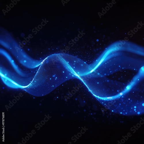 Dynamic waves of glowing blue light moving in elegant curves, giving a sense of motion and energy in a dark space