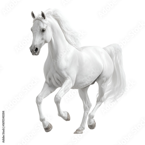 Dynamic White Horse Galloping Freely on a Transparent Background, Showcasing its Energy and Unbridled Spirit