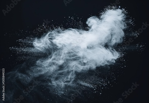 Dynamic white powder explosion on a dark background