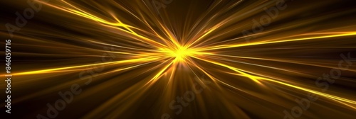 Dynamic yellow light burst abstract rays on dark yellow background with gold sparkles