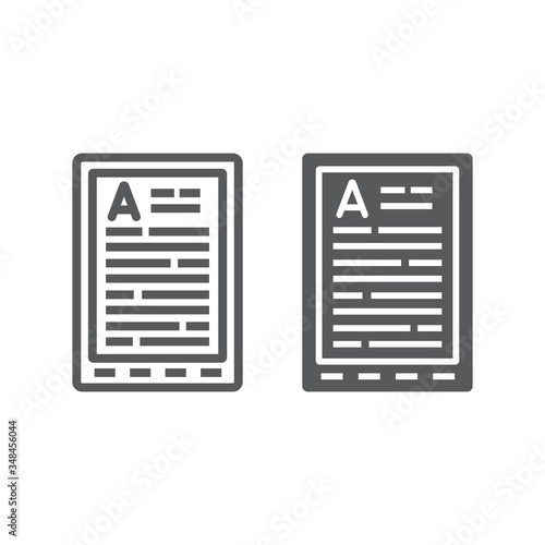 E Book Reader line and glyph icon, education and school, digital book sign vector graphics, a linear icon on a white background, eps 10.