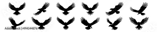 Eagle silhouettes set, pack of vector silhouette design, isolated background