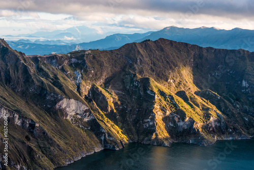 Early morning on the Quilotoa volcano caldera and lake, Andes. Ilinizas Nature Reserve, Ecuador