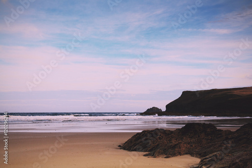 Early morning view over the beach at Polzeath Vintage Retro Filt