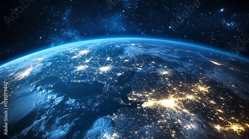 Earth at Night City Lights and Clouds From Space View