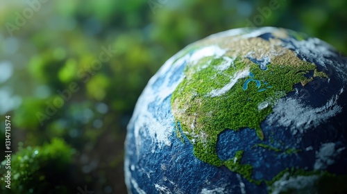 Earth covered with green and blue texture, symbolizing its ecological purity .