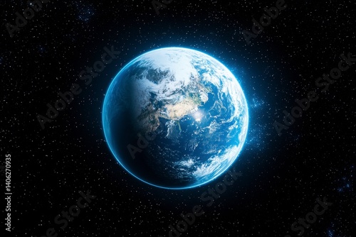 Earth From Space Digital Rendering of Illuminated Planet Against Starry Background
