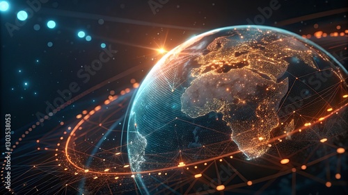 Earth from space showing international network representing communication, travel and connections. 3D illustration.