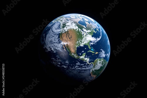 Earth from space with detailed view of continents, oceans, and cloud formations.