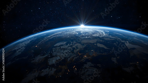 Earth from space with orbiting satellites, showcasing global communication, advanced technology, and the beauty of our planet.