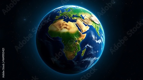 Earth globe floating in starry space, representing our planet's beauty and vastness.