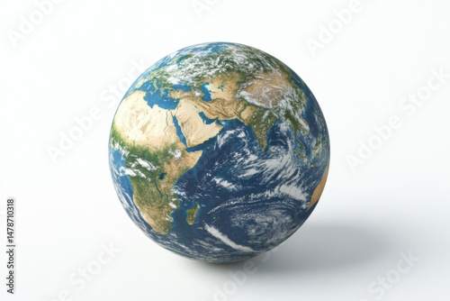 Earth Globe Isolated on White Background Showing Africa Europe and Asia in Detail Studio Shot