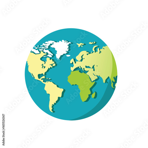 "Earth Icon – Stylized Globe Illustration with Green and Yellow Continents on Blue Oceans – Representing Global Awareness, Environmental Conservation, Geography, and Planetary Unity – Ideal for Eco Ap