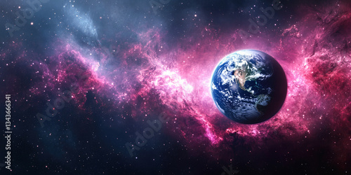 Earth in colorful nebula: stunning cosmic display of our planet in space
