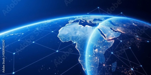 Earth in space with blue lines connecting Dubai UAE to cities across the world, depicting a global travel and networking concept, travel, world, Dubai