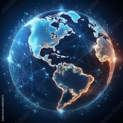 Earth is shot from outer space, showcasing networks, telecommunications, celestial matter, and advanced technology communication systems, highlighting global connectivity, satellite technology, and pl