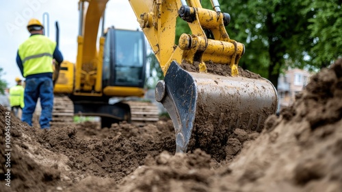 Earth mover: excavator at work, strength and engineering of construction equipment it carves out terrain, pivotal in site preparation and infrastructure development