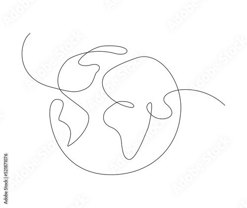Earth one line. Planet continuous line. Globe line art. vector, outline world