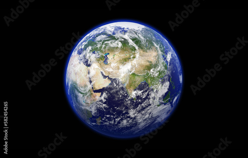 Earth planet isolated on black. Science fiction fictional cosmic background with earth globe