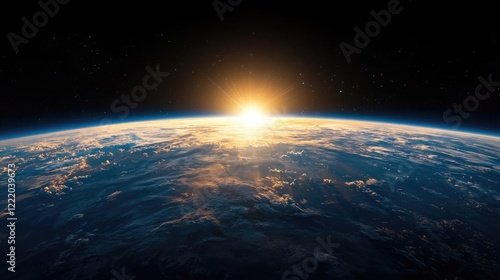 Earth sunrise space view; clouds, atmosphere, sunrise background; environmental use