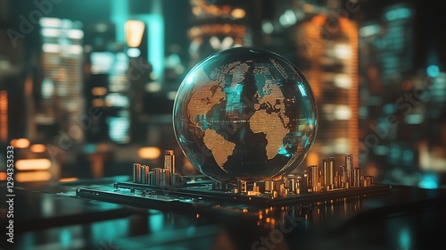 Earth surrounded by floating illuminated cityscapes futuristic perspective high resolution picture