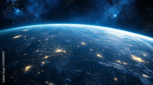Earth surrounded by the vastness of outer space with glowing atmosphere