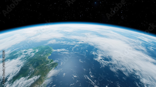 Earth view from space, showcasing blue oceans and white clouds, evokes sense of wonder