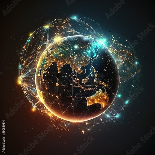 earth with space, global structure networking and data exchanges connection, Customer network, Digital marketing, Social Media, Communication network. generative ai