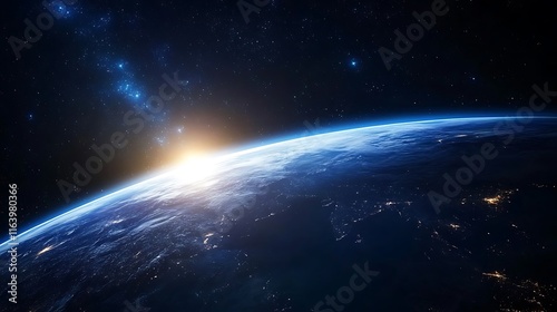 Earthrise: A breathtaking view of our planet from space, showcasing the vibrant sunrise over the Earth's curve, with a backdrop of twinkling stars and the vast expanse of space.