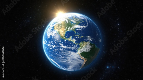 Earthrise: A Stunning View of Planet Earth from Space, Showing the Americas and Surrounding Oceans during a Sunrise